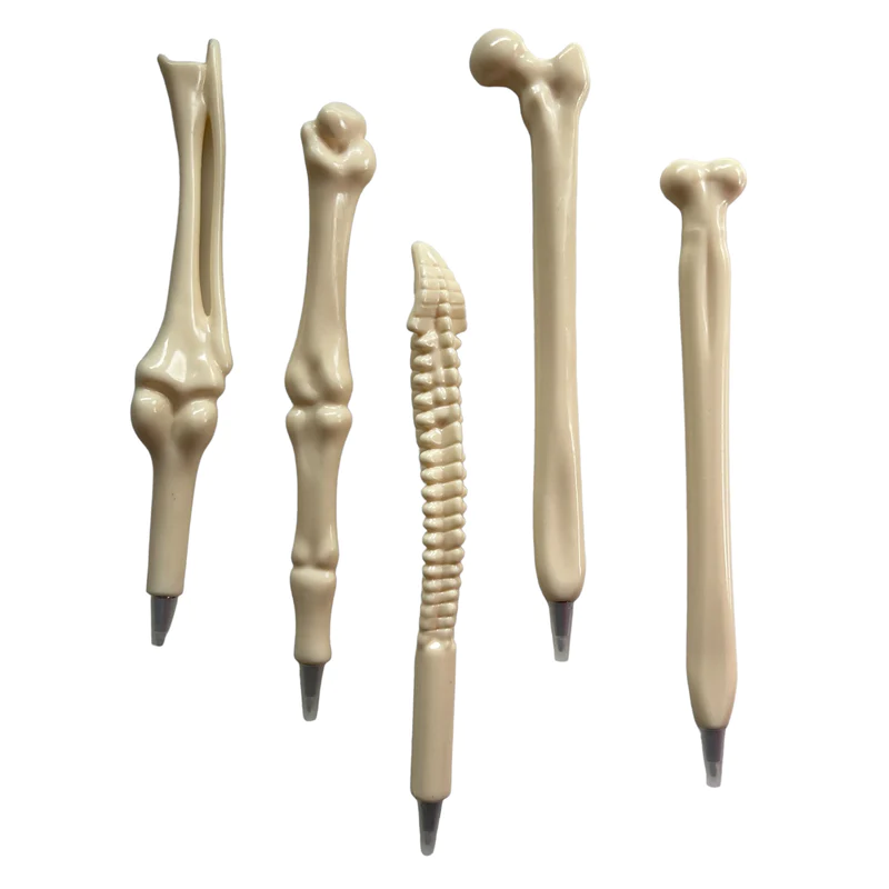 Unique Bone-Shaped Design: The Bone Pen – 5pc set features pens that are creatively designed in the shape of bones. This distinctive design adds a touch of whimsy and makes them stand out from traditional pens.